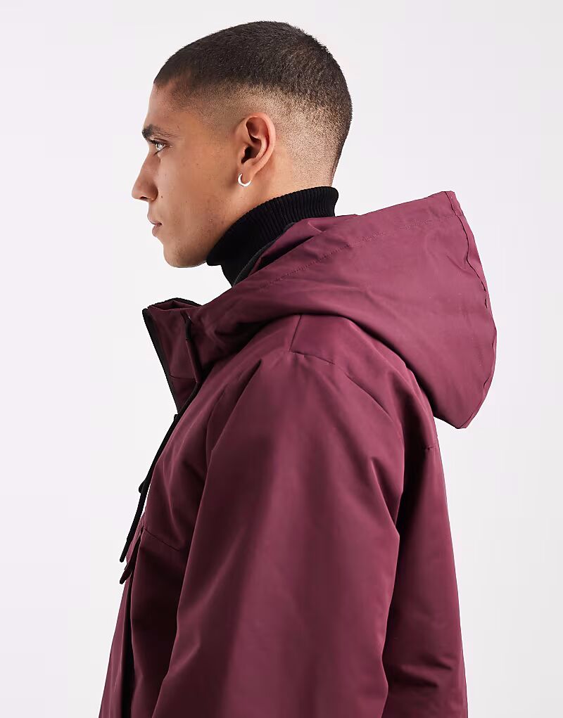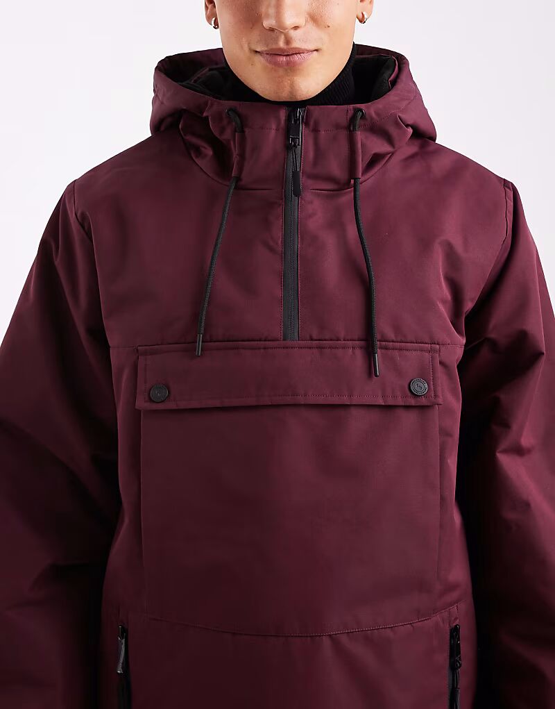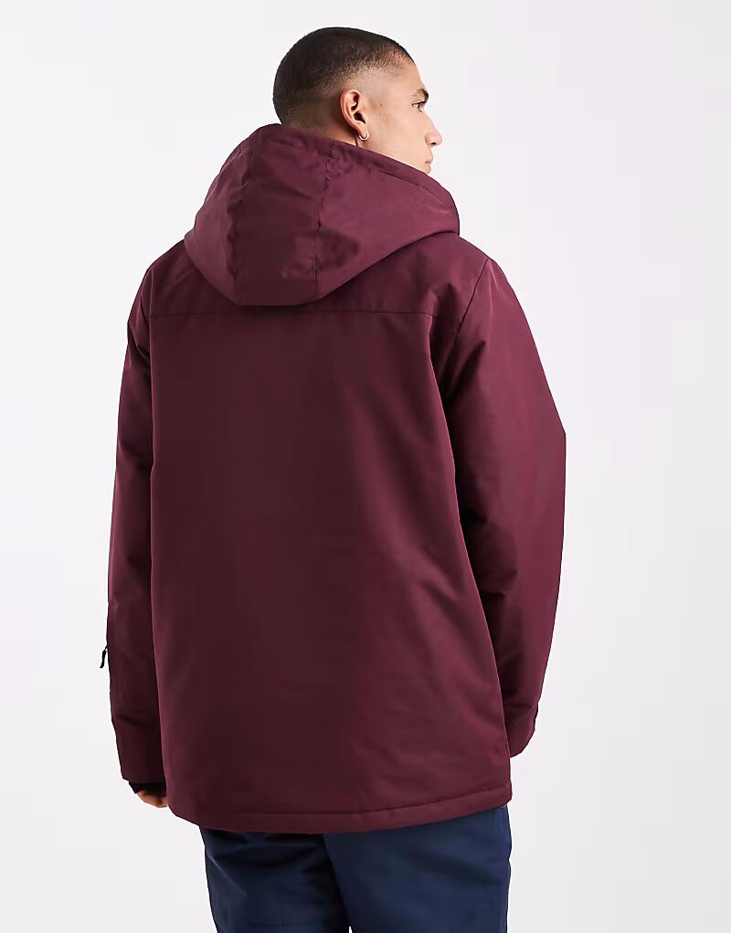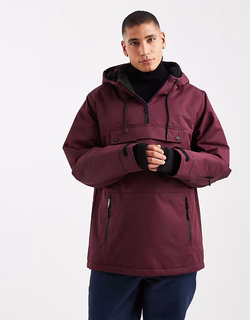 Потертая лыжная куртка с капюшоном и карманами бордового цвета Threadbare
