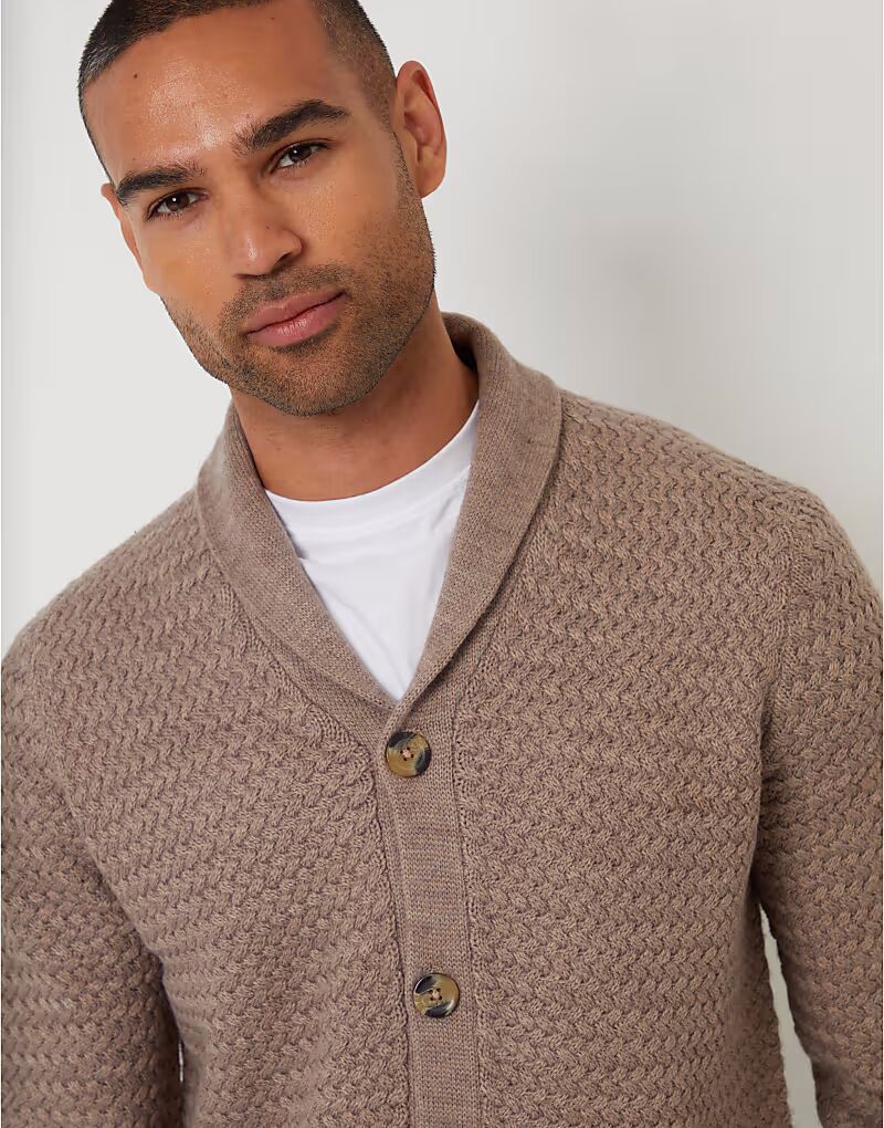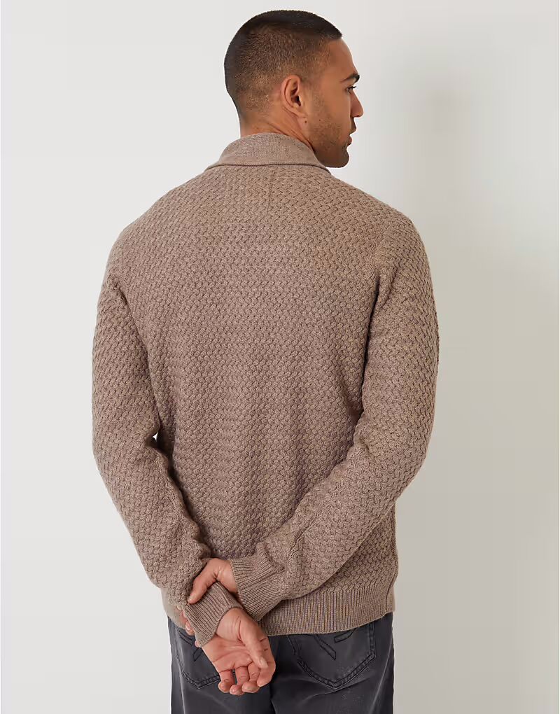 Вязаный кардиган с воротником-шалькой, серо-коричневый Threadbare