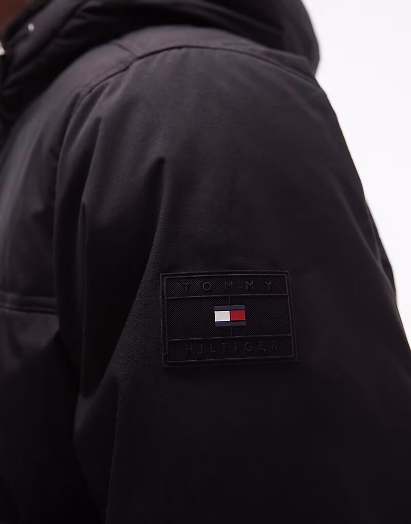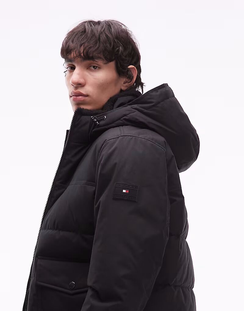 Утепленное пальто с капюшоном черного цвета Tommy Hilfiger