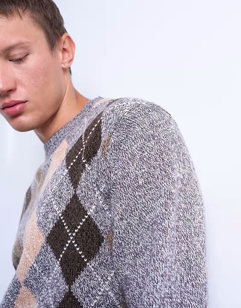 Джемпер с узором «ромбик» коричневого цвета Topman 7 982₽