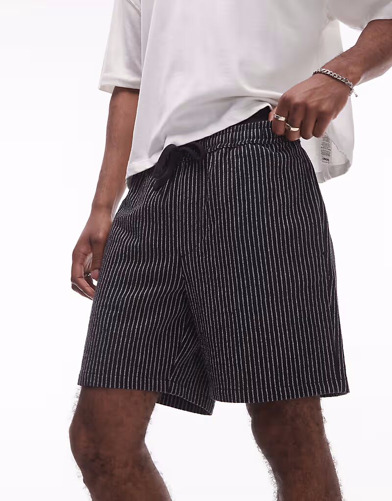 Черные шорты с мешковатым кроем и текстурированной полоской Topman