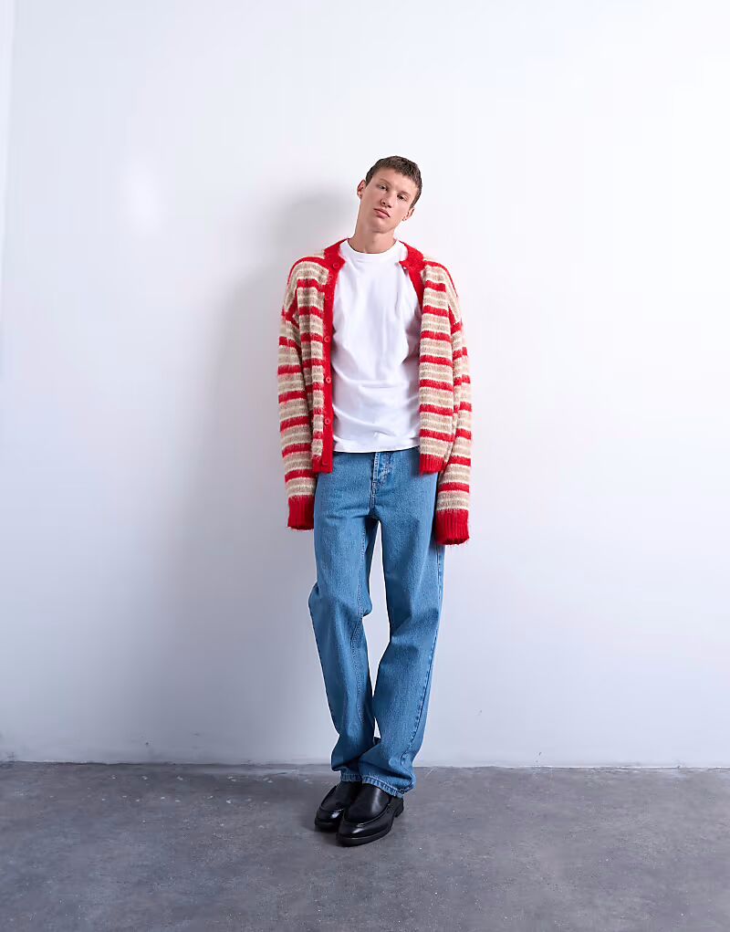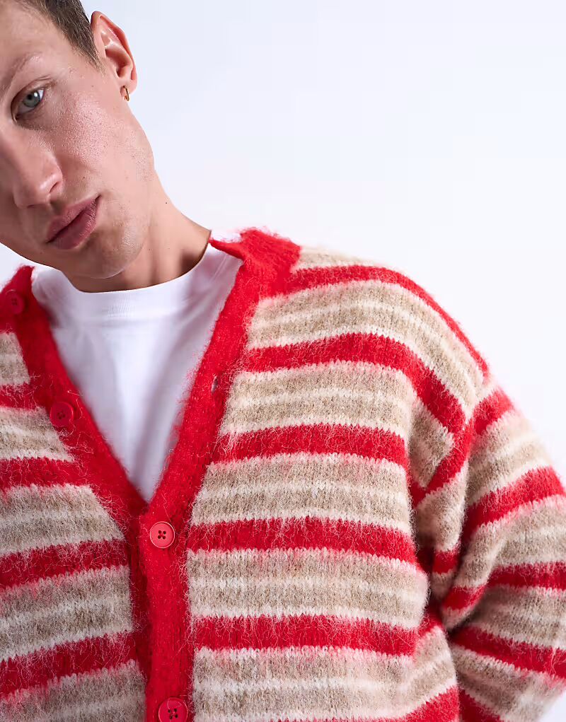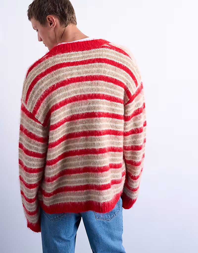 Пушистый полосатый кардиган красный Topman 6 151₽