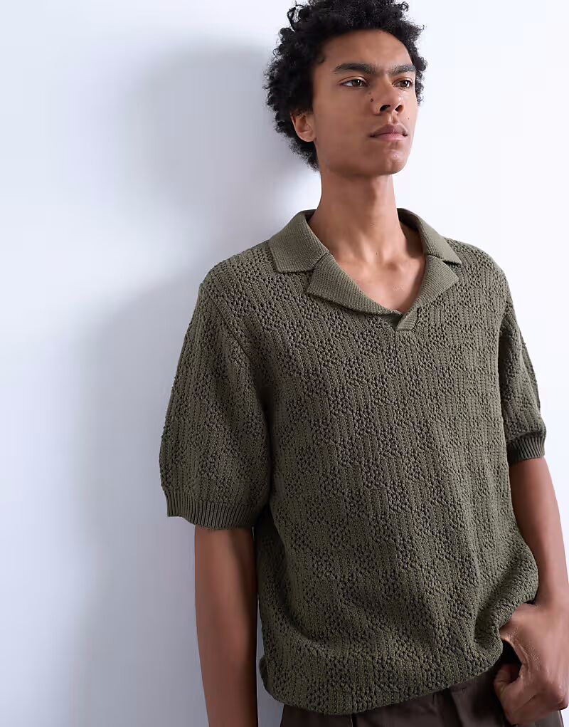 Вязаное крючком поло в клетку цвета хаки Topman 4 087₽