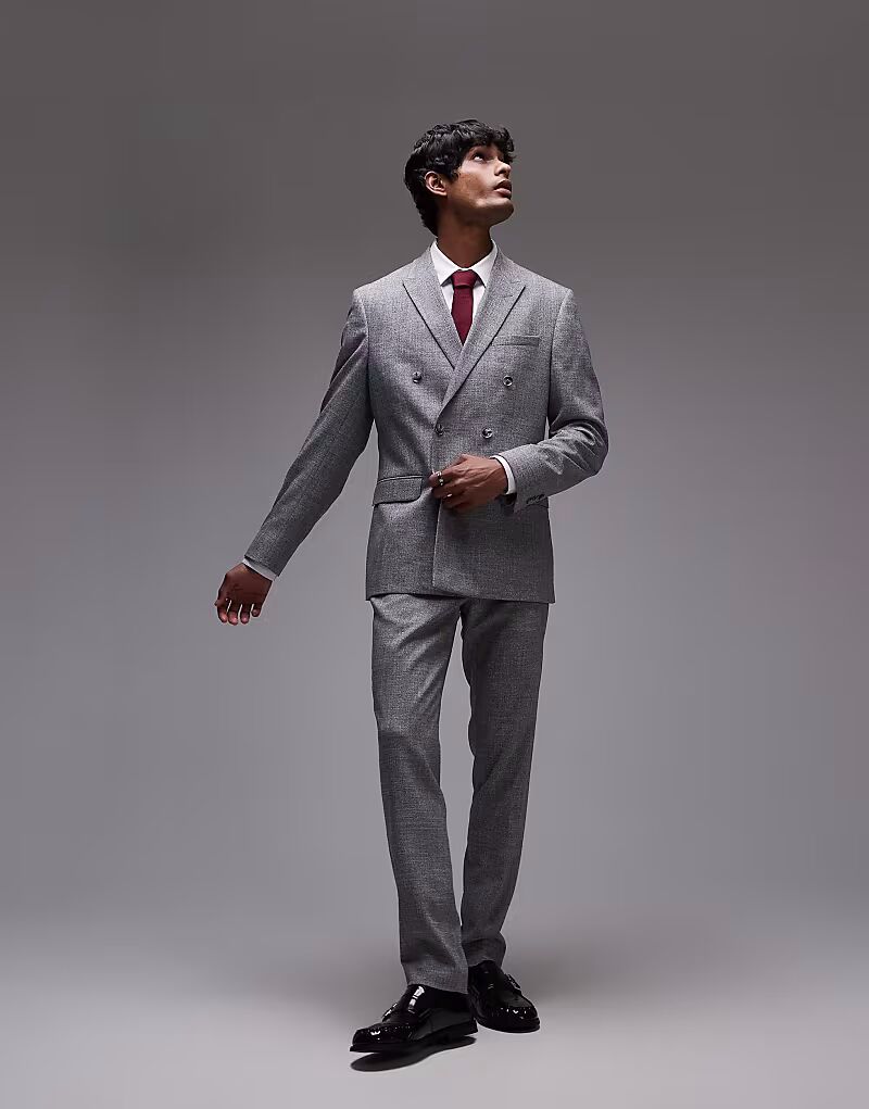 Узкий фактурный пиджак серого цвета Topman