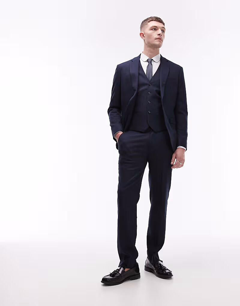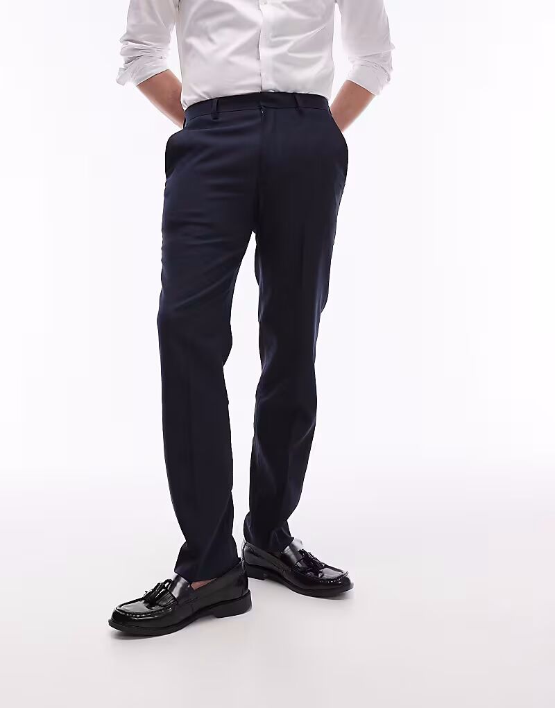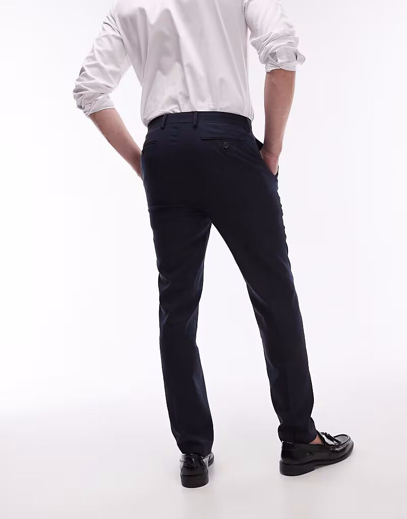 Эластичные фактурные брюки темно-синего цвета Topman