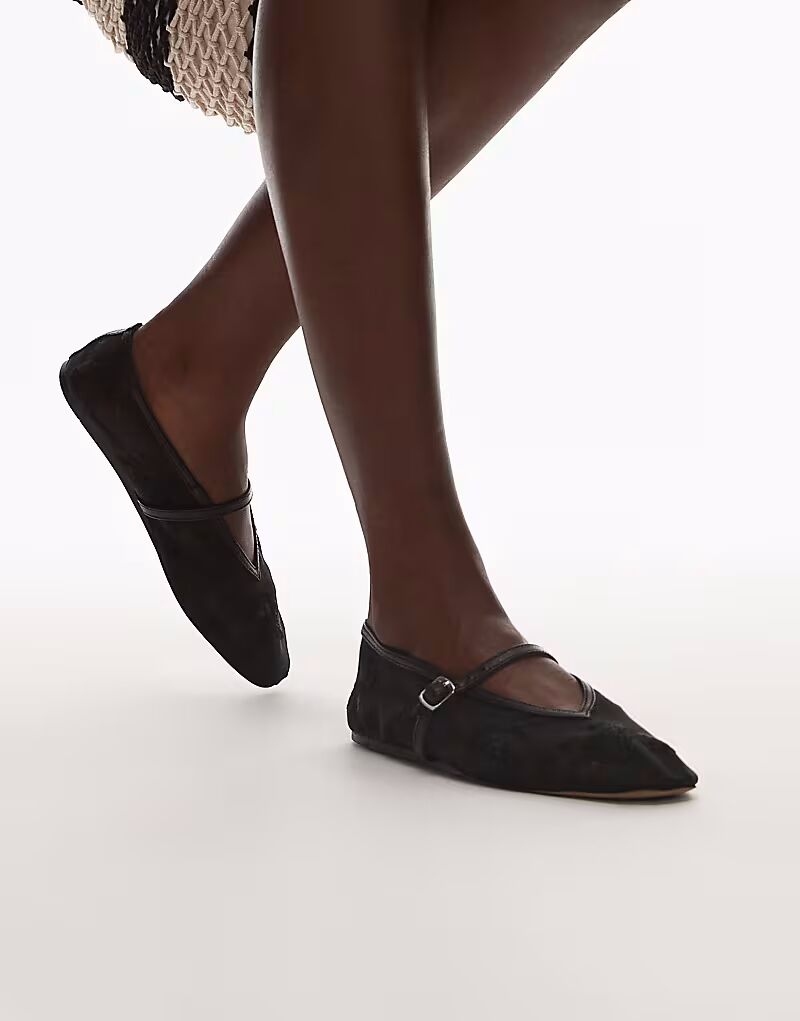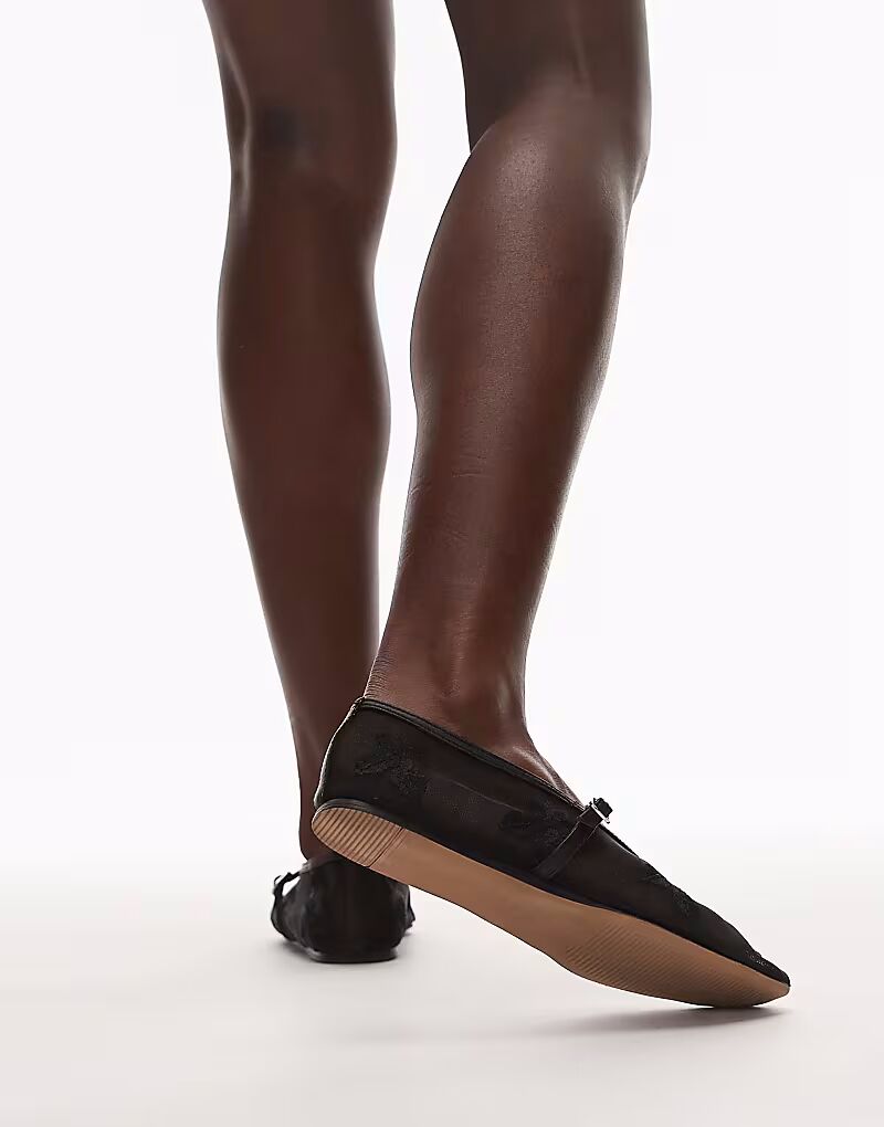 Балетки Alex с вышитыми цветами, черного цвета Topshop