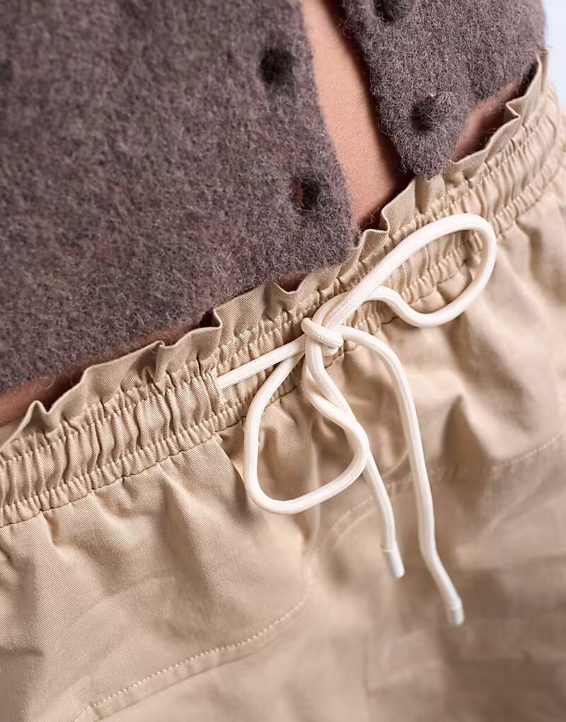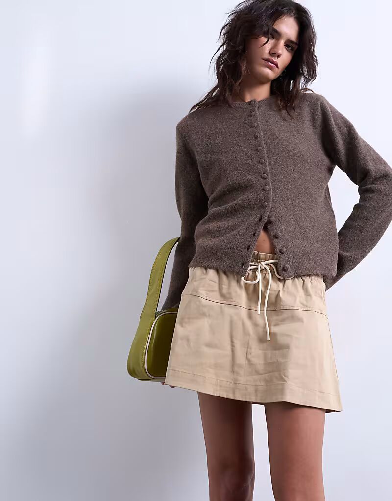 Мини-юбка с эластичной талией бежевого цвета Topshop