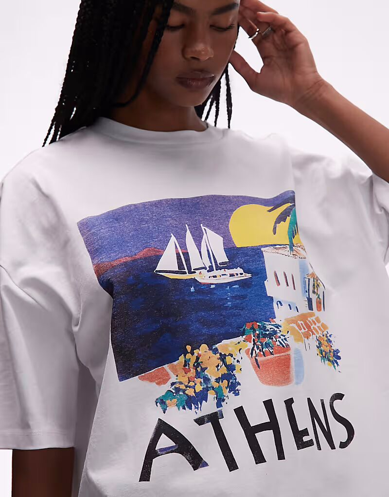 Футболка с принтом «Афины» белого цвета Topshop 3 498₽