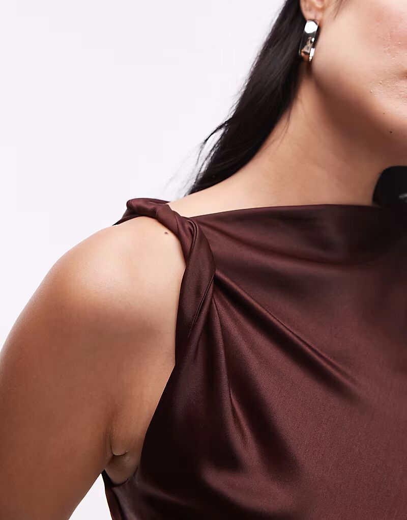 Мини-платье с перекрученными плечами цвета горького шоколада Topshop