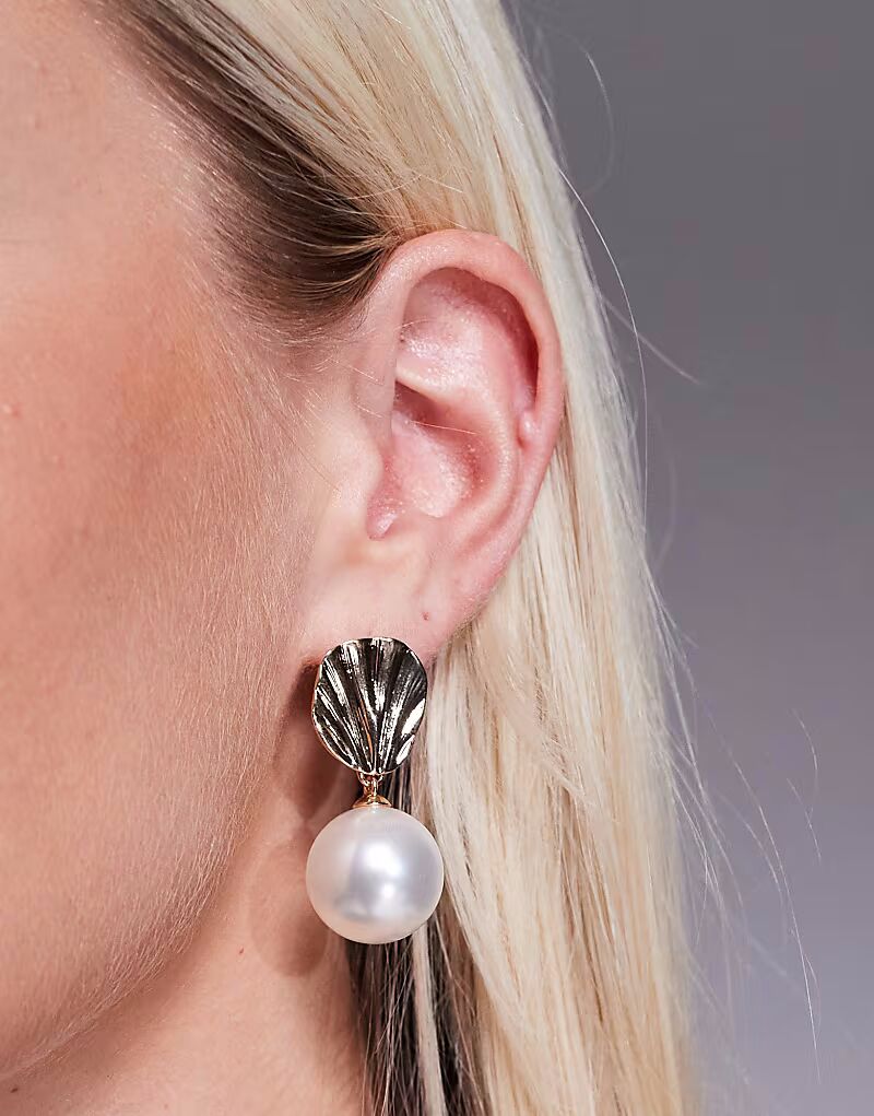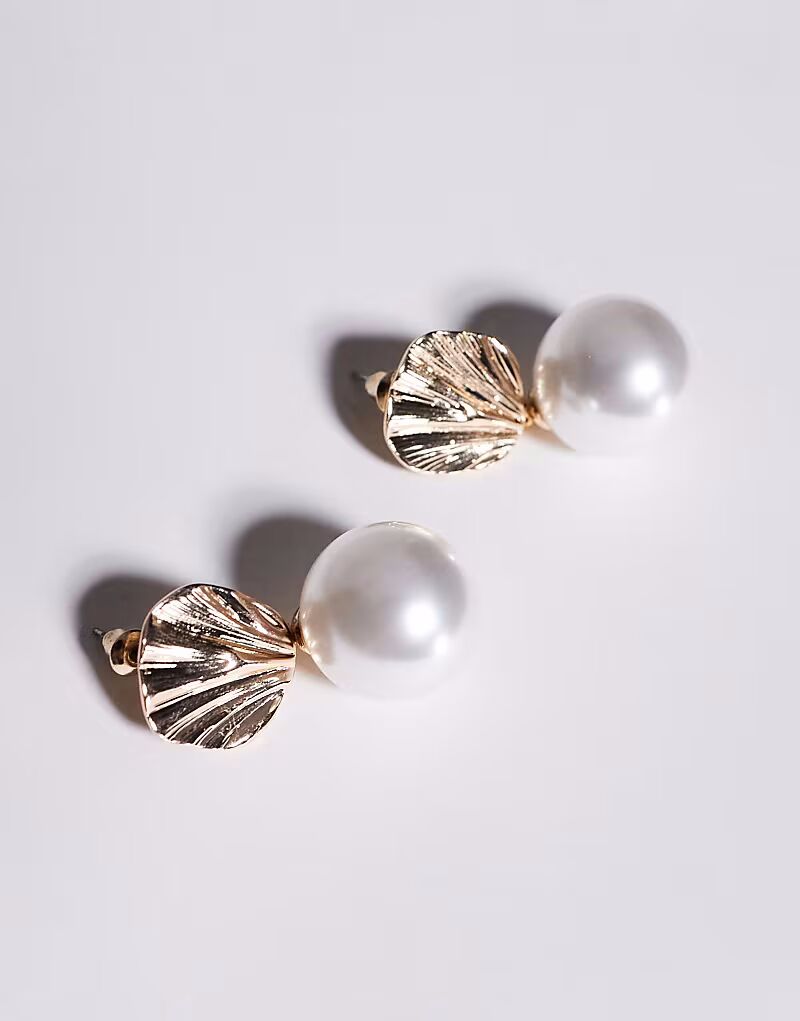 Серьги-гвоздики с текстурированным жемчугом в золоте True Decadence