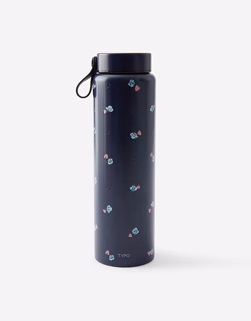 Термобутылка 1 л 2.0 с темно-синим цветочным принтом Typo