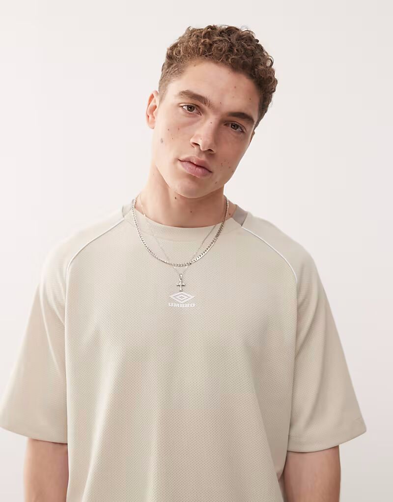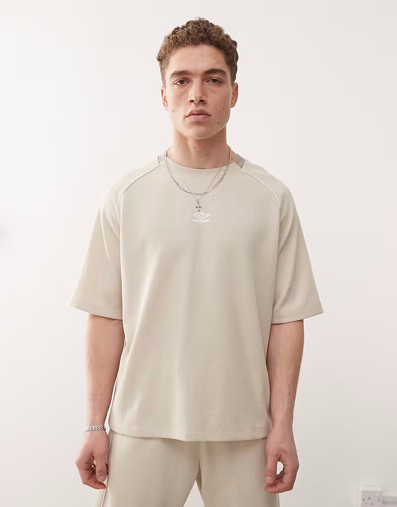 Футболка с сетчатыми вставками бежевого цвета Umbro