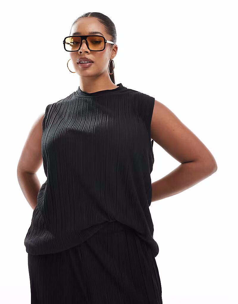 Топ без рукавов с плиссе, черный Vero Moda Curve