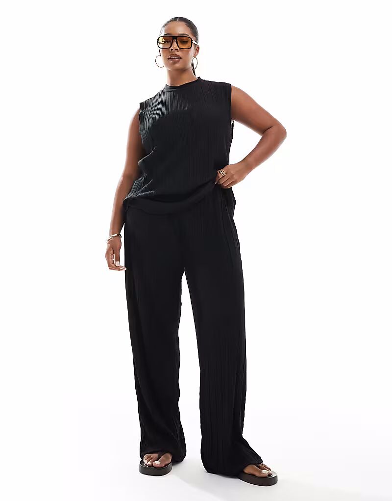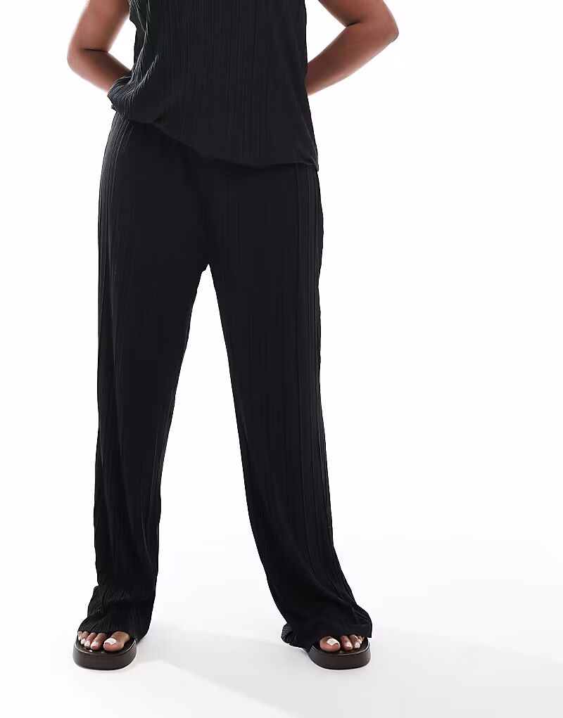 Брюки plisse co-ord чёрного цвета Vero Moda Curve