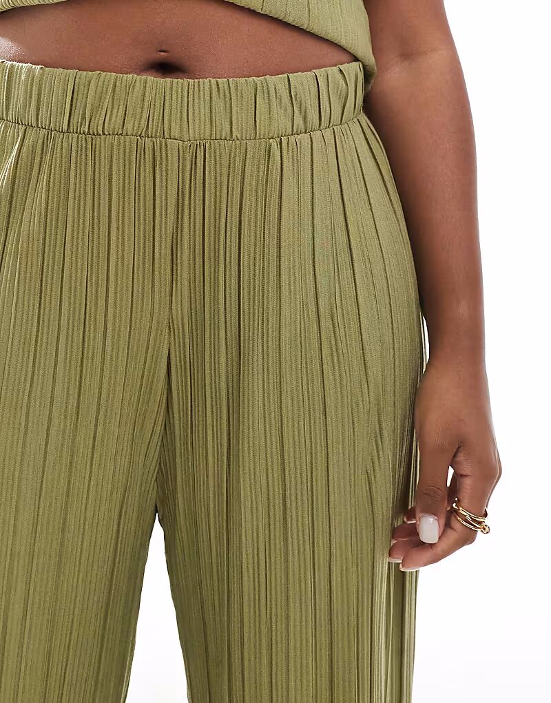 Плиссированные брюки цвета хаки Vero Moda Curve