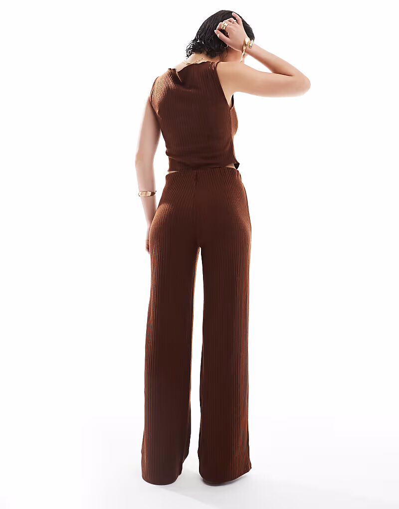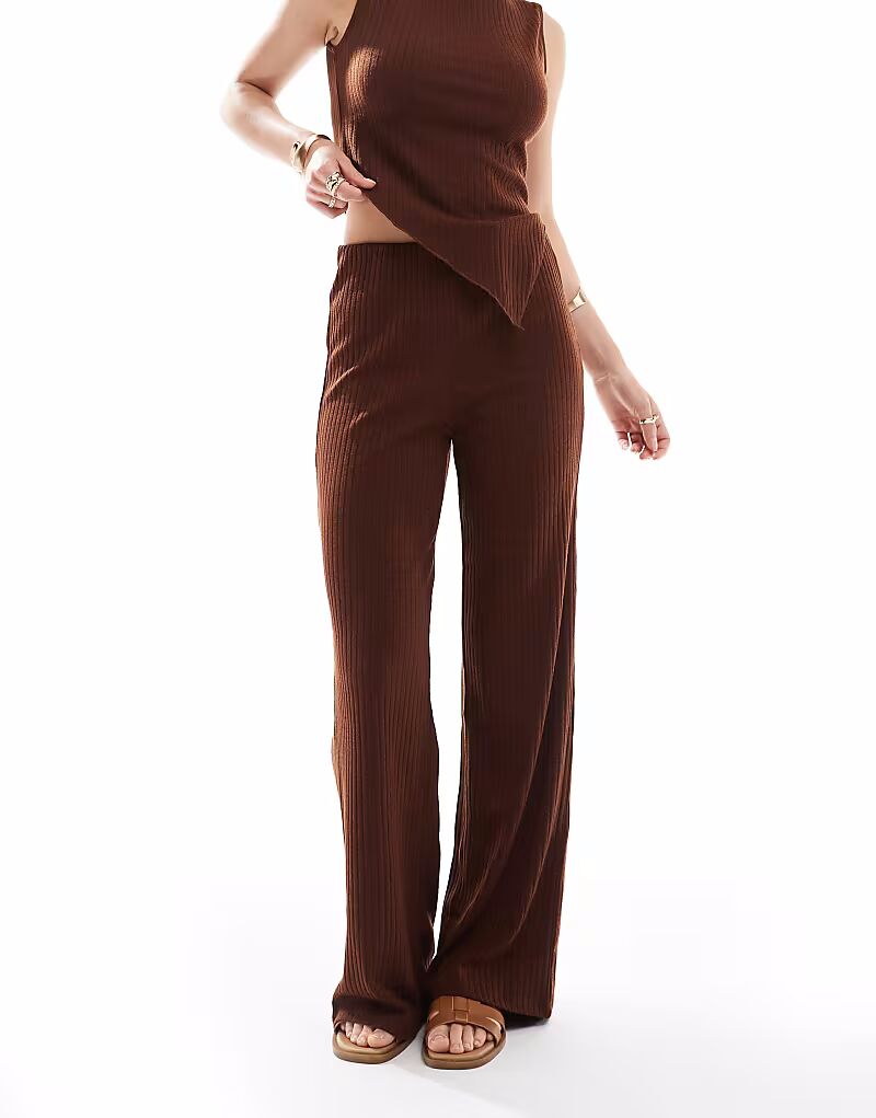 Широкие брюки в рубчик шоколадного цвета Vero Moda