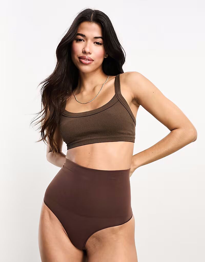Бесшовные стринги с высокой талией коричневого цвета Vero Moda