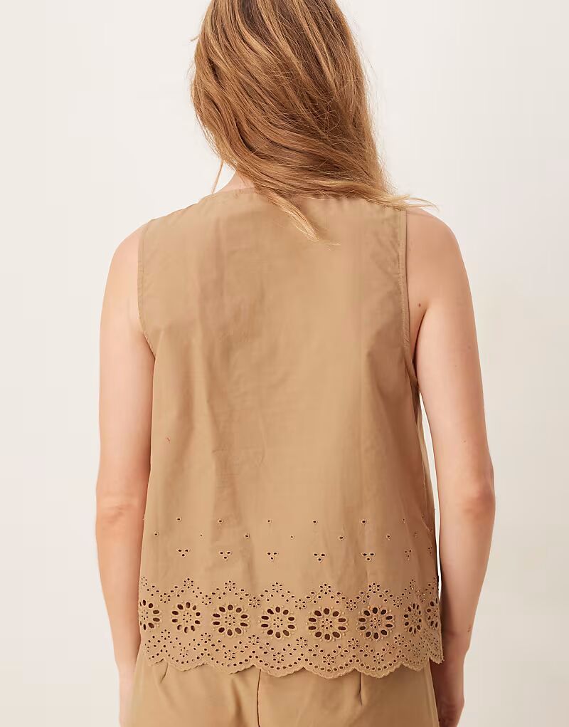 Топ с вышитым ришелье и завязкой спереди, табачного цвета Vila