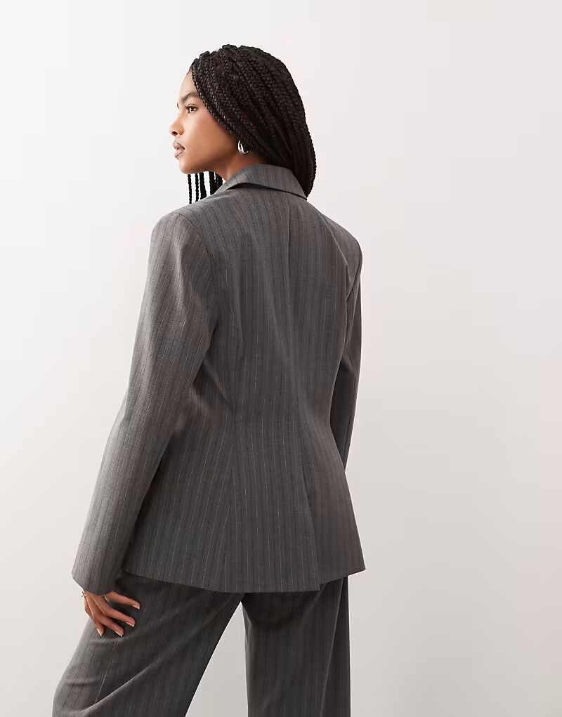 Блейзер для будних дней в серую меланжевую полоску Weekday