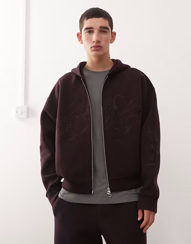 Толстовка Simon с капюшоном на молнии coord с вышитым рисунком бордового цвета Weekday 10 358₽