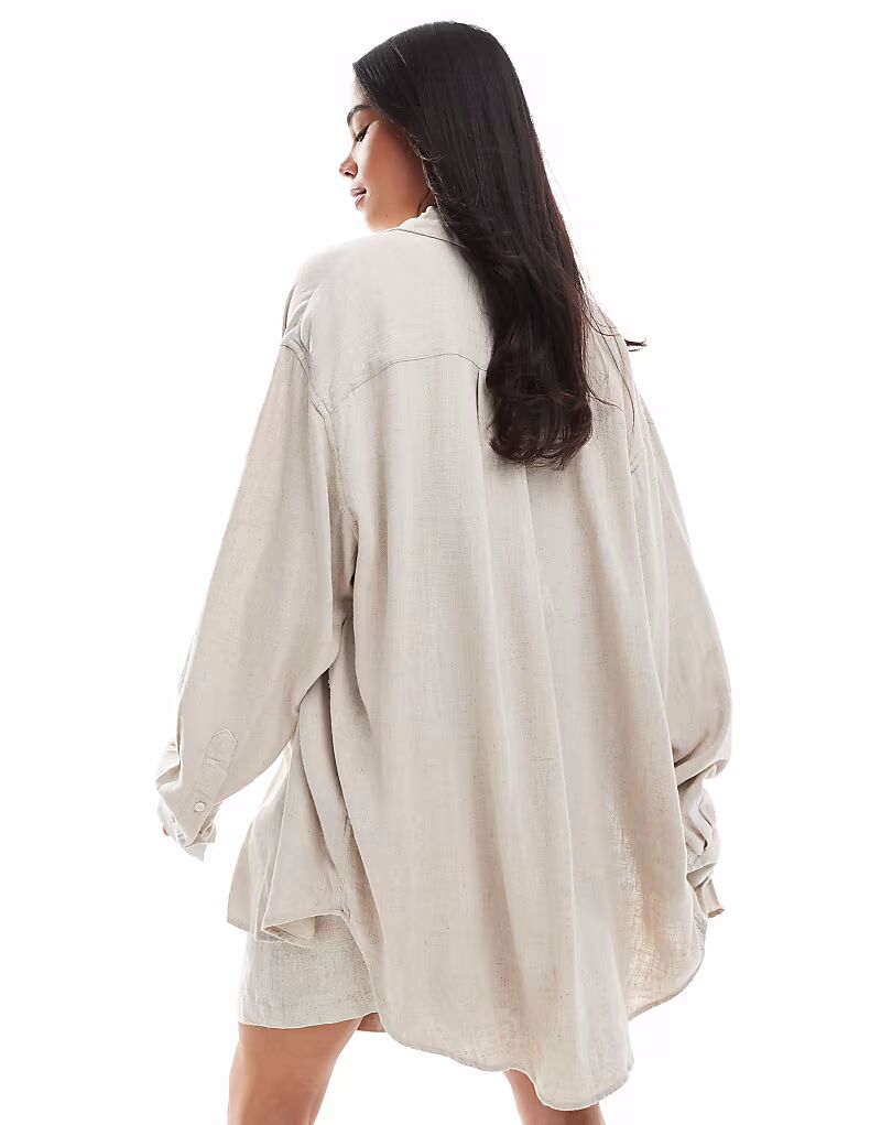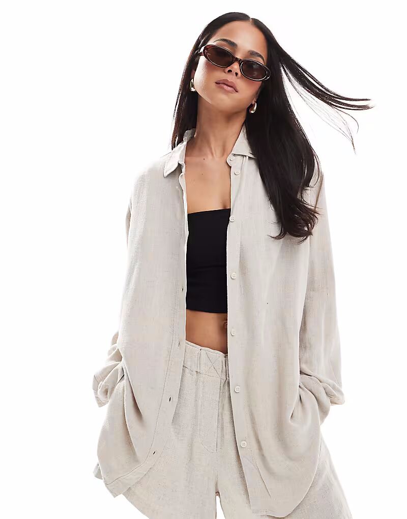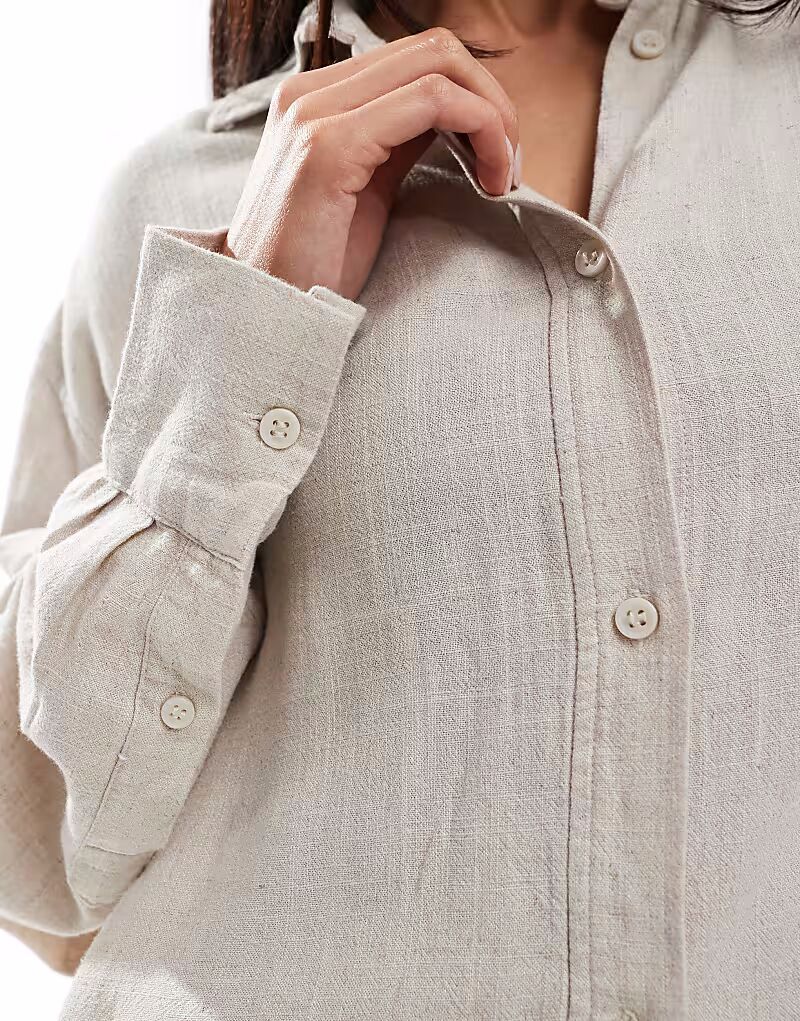 Рубашка Perfect из смеси льна в оттенке «бежевый» Weekday