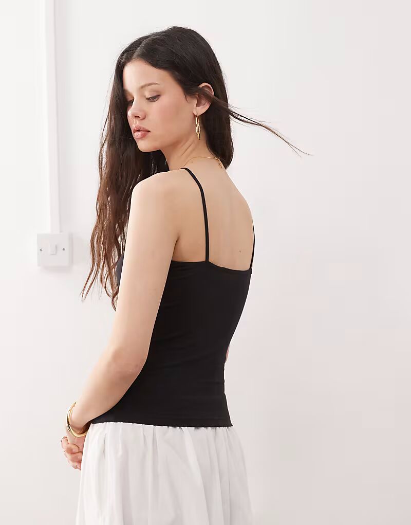 Узкий топ-майка черного цвета Weekday