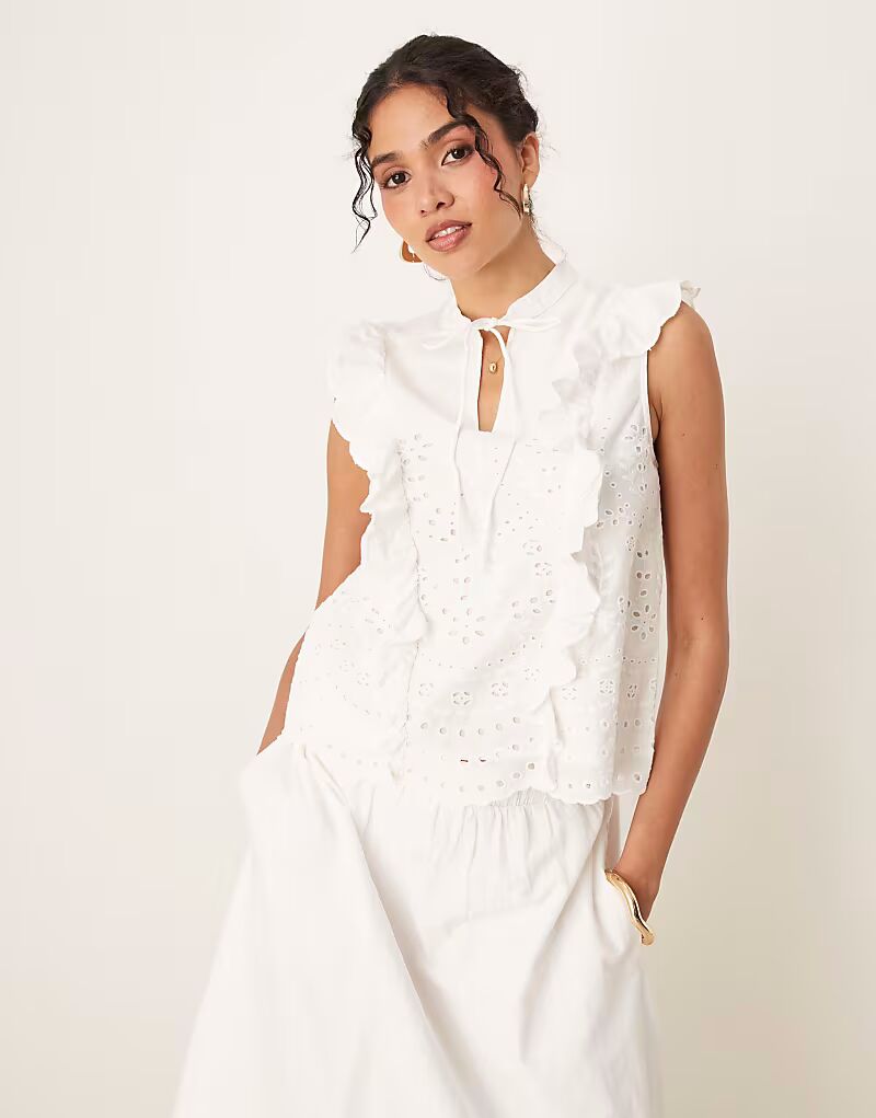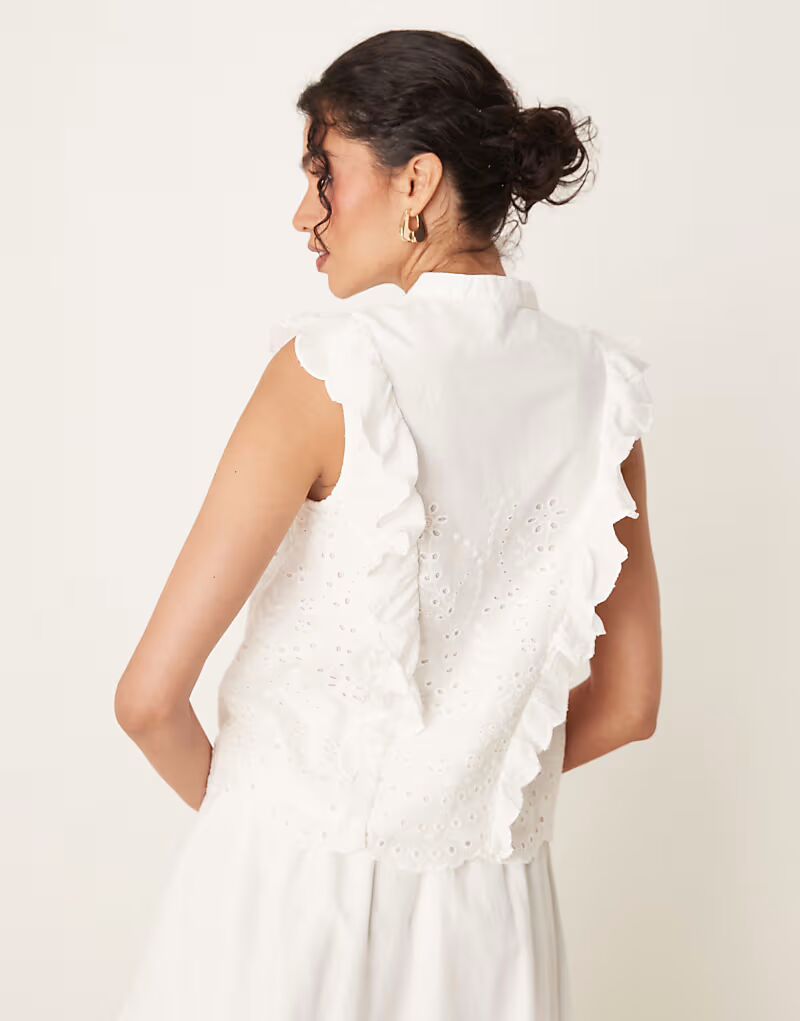 Топ с вышитой оборкой и завязкой на шее, белый цвет Yas