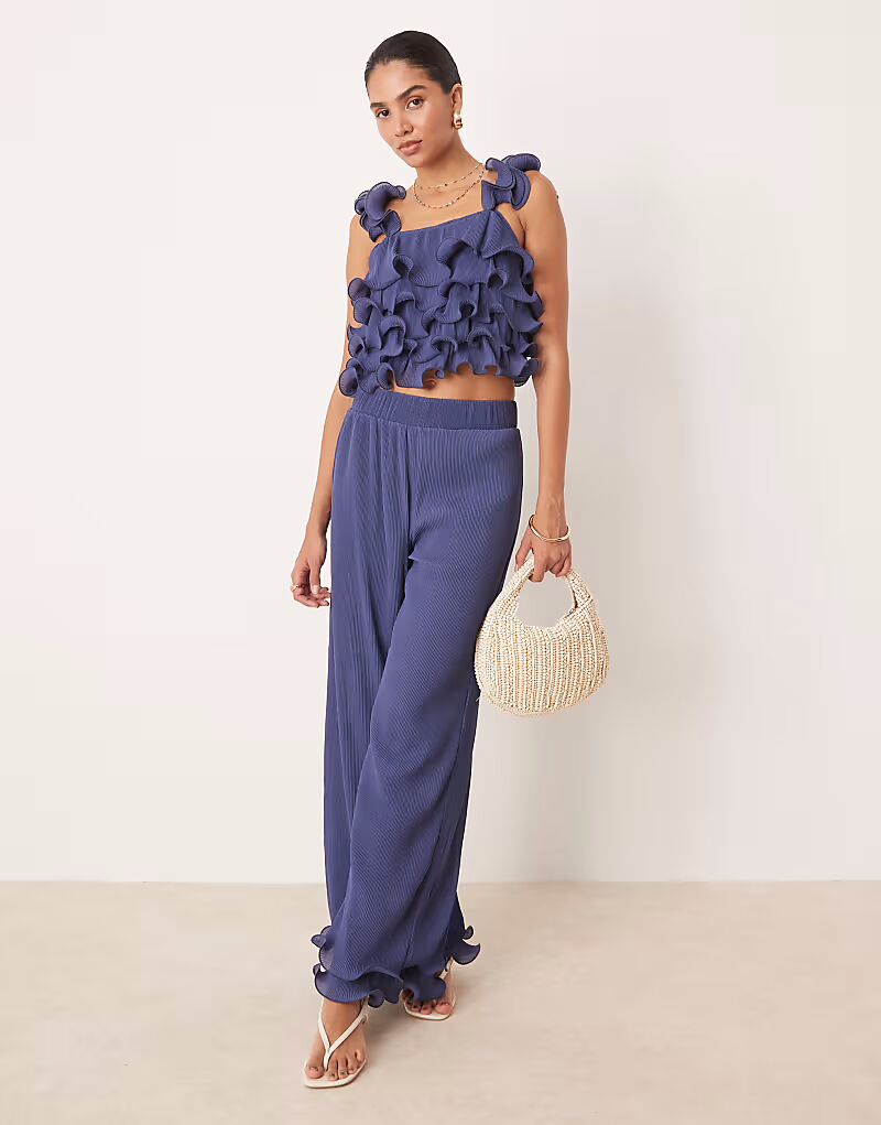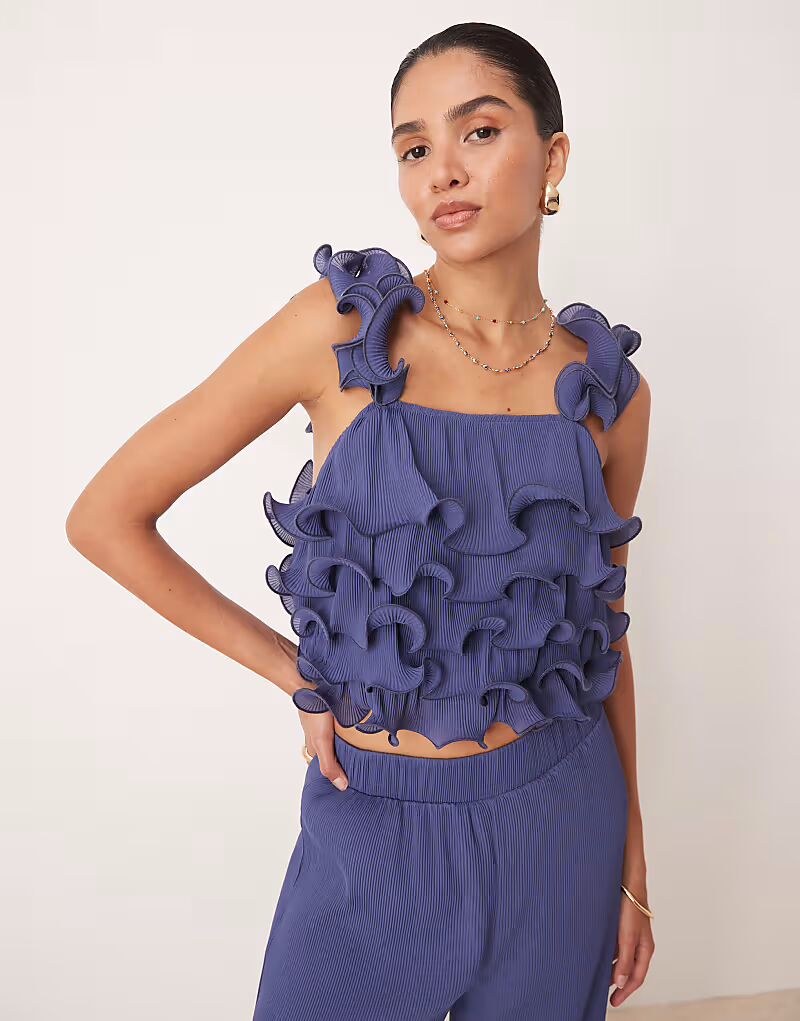 Структурированный топ с оборкой темно-синего цвета Yas