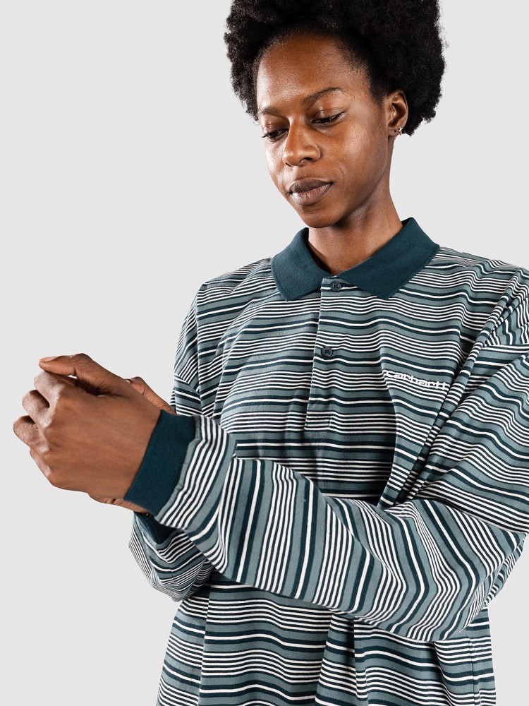 Лонгслив Carhartt WIP Largo Longsleeve Polo, largo stripe/deep lagoon