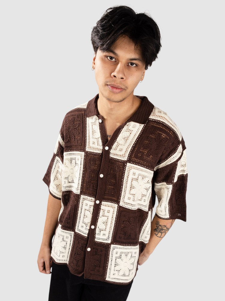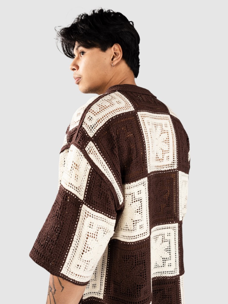 Рубашка Woodbird WBBanks Crochet Knit Hemd, brown/off white