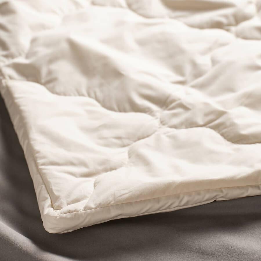 Это теплое одеяло изготовлено из дышащего неокрашенного (небеленого) хлопка, наполнитель которого на 100% состоит из шерсти. Благодаря натуральным волокнам вы гарантированно почувствуете комфорт, тепло зимой и прохладу летом.