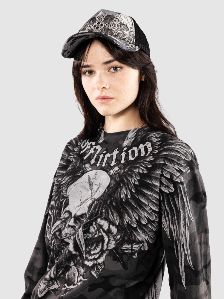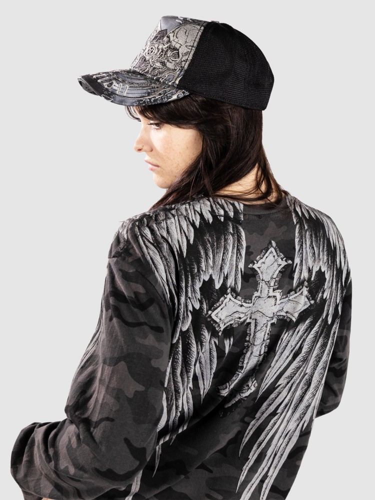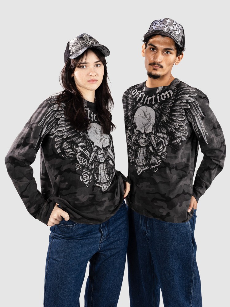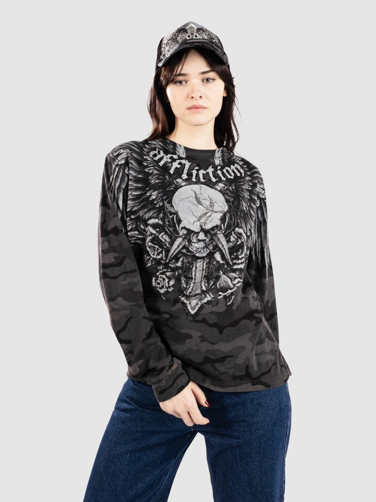 Лонгслив Affliction Crossed Over Longsleeve, black camo w/lava wash