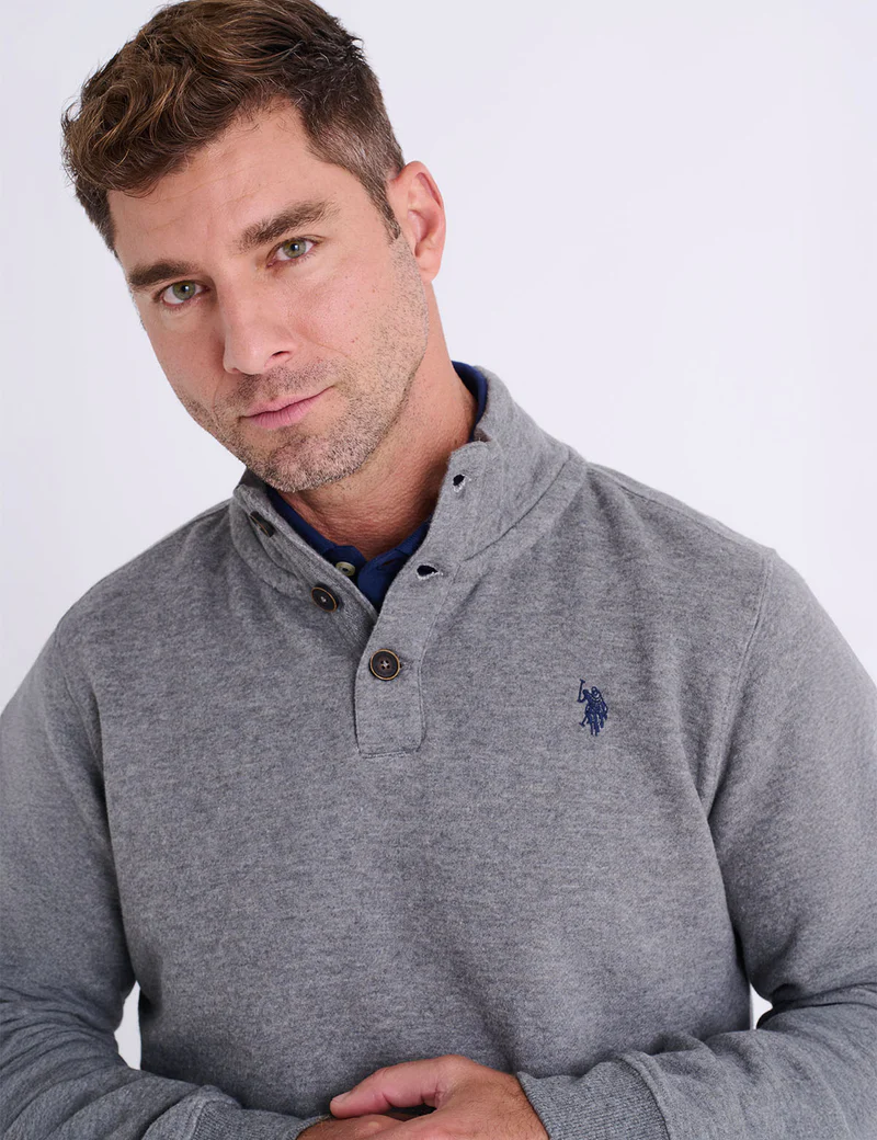 Пуловер U.S. Polo Assn Peached Fleece Button Mock Neck, серый - фото