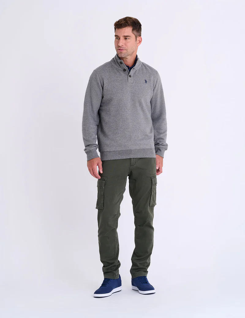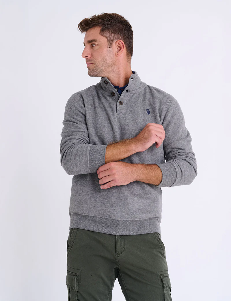 Пуловер U.S. Polo Assn Peached Fleece Button Mock Neck, серый
