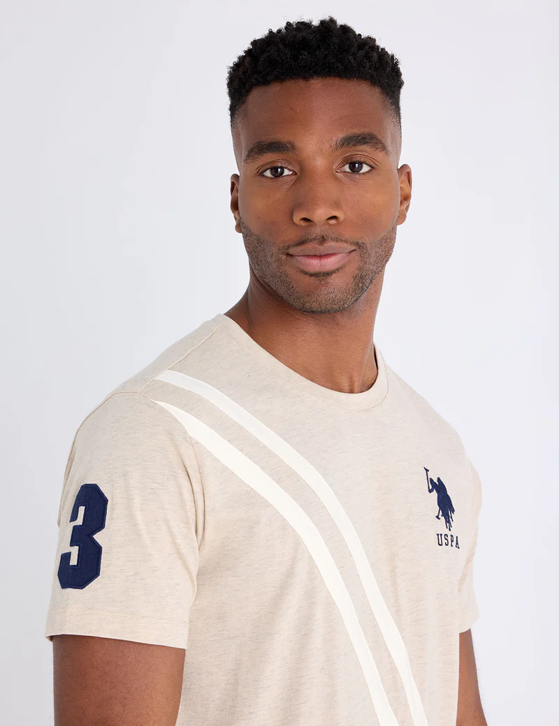 Выразите свою сдержанную уверенность в этой футболке с круглым вырезом и поясом от US Polo Assn. Футболка изготовлена из лёгкой, дышащей ткани и украшена яркими полосками в виде пояса спереди, что создаёт спортивный и динамичный образ. Фирменный вышитый логотип US Polo Assn на груди и культовая нашивка в виде цифры «3» на правом рукаве отсылают к классическому наследию поло. Благодаря классическому крою для повседневного комфорта, эта модель станет отличным способом разнообразить ваш повседневный образ.
