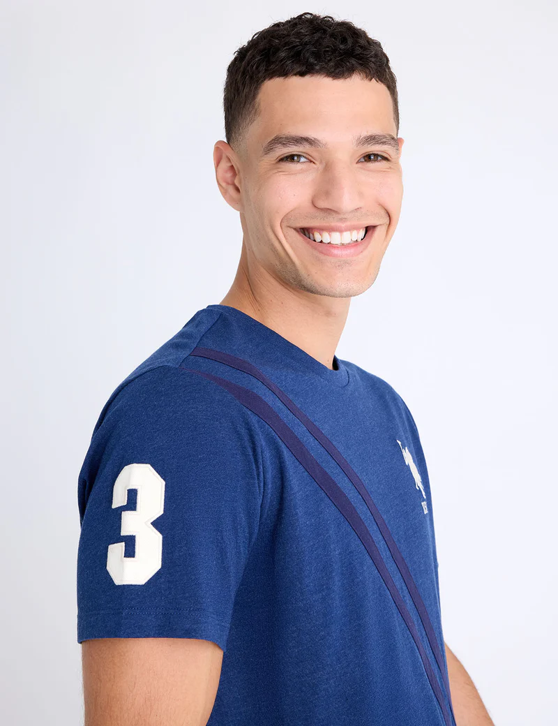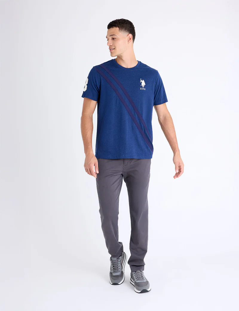 Выразите свою сдержанную уверенность в этой футболке с круглым вырезом и поясом от US Polo Assn. Футболка изготовлена из лёгкой, дышащей ткани и украшена яркими полосками в виде пояса спереди, что создаёт спортивный и динамичный образ. Фирменный вышитый логотип US Polo Assn на груди и культовая нашивка в виде цифры «3» на правом рукаве отсылают к классическому наследию поло. Благодаря классическому крою для повседневного комфорта, эта модель станет отличным способом разнообразить ваш повседневный образ.