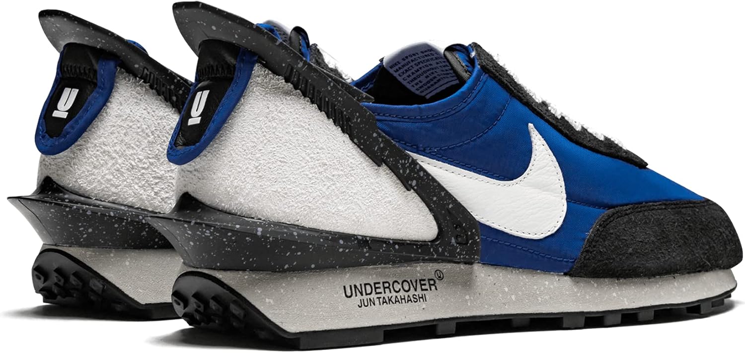 Undercover x Nike DBreak Blue - это специальная конструкция для Nike Daybreak, переработанная Джуном Такахаши. Эта уникальная интерпретация оригинальной конструкции винтажных беговых кроссовок из нейлона и замши отличается заметной пластиковой вставкой на пятке, создающей смелый футуристический эффект. Брендинг Undercover также присутствует на межподошве, а логотип U бренда расположен на пятке. Эта расцветка отличается нейлоновой основой Blue Jay с черными и светло-серыми замшевыми накладками и белыми акцентами на боковых свушах, язычке и шнурках. Межподошва и спойлер на пятке имеют крапчатую отделку, что еще больше дополняет силуэт от Такахаши. Undercover x Nike DBreak Blue выпущены в июне 2019 года.