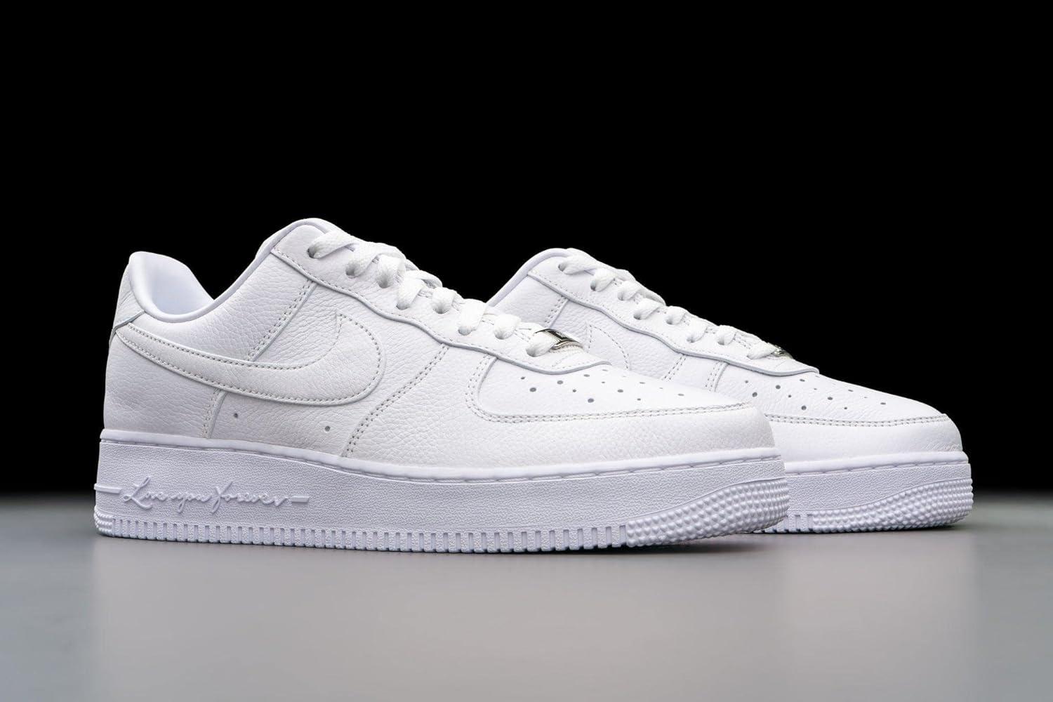 Силуэт Air Force 1 Low SP Верх из высококачественной кожи Кожаная подкладка Плоские хлопковые шнурки Перфорированный носок с отверстиями большого и маленького размера Вышитые логотипы NOCTA и NIKE AIR на пятках Резиновая промежуточная подошва с надписью Love You Forever Резиновая подошва с сердечками спереди и сзади Модель: nkcz8065-100 Цвет: белый / кобальтовый Материал: кожа