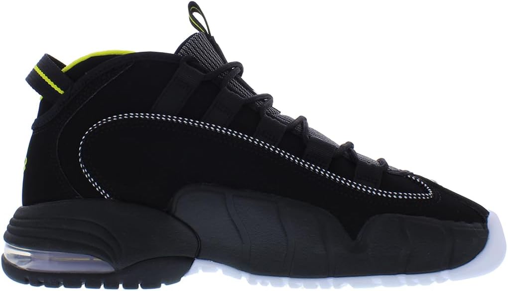 Кроссовки Nike Air Max Penny выполнены из кожи и нейлона с мягким бортиком для комфорта. Кроссовки украшены вышитыми логотипами Swoosh на язычке и боковой стороне, а также логотипом Swoosh спереди и вышитым логотипом Air Max Penny сзади. Кроссовки имеют видимую подошву, шнуровку и резиновую подметку. Модель: NKDV0684-100, цвет: белый / Varsity Royal / черный, материал: кожа / нейлон.