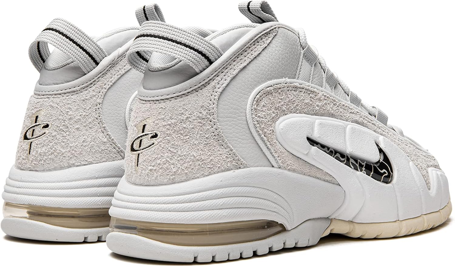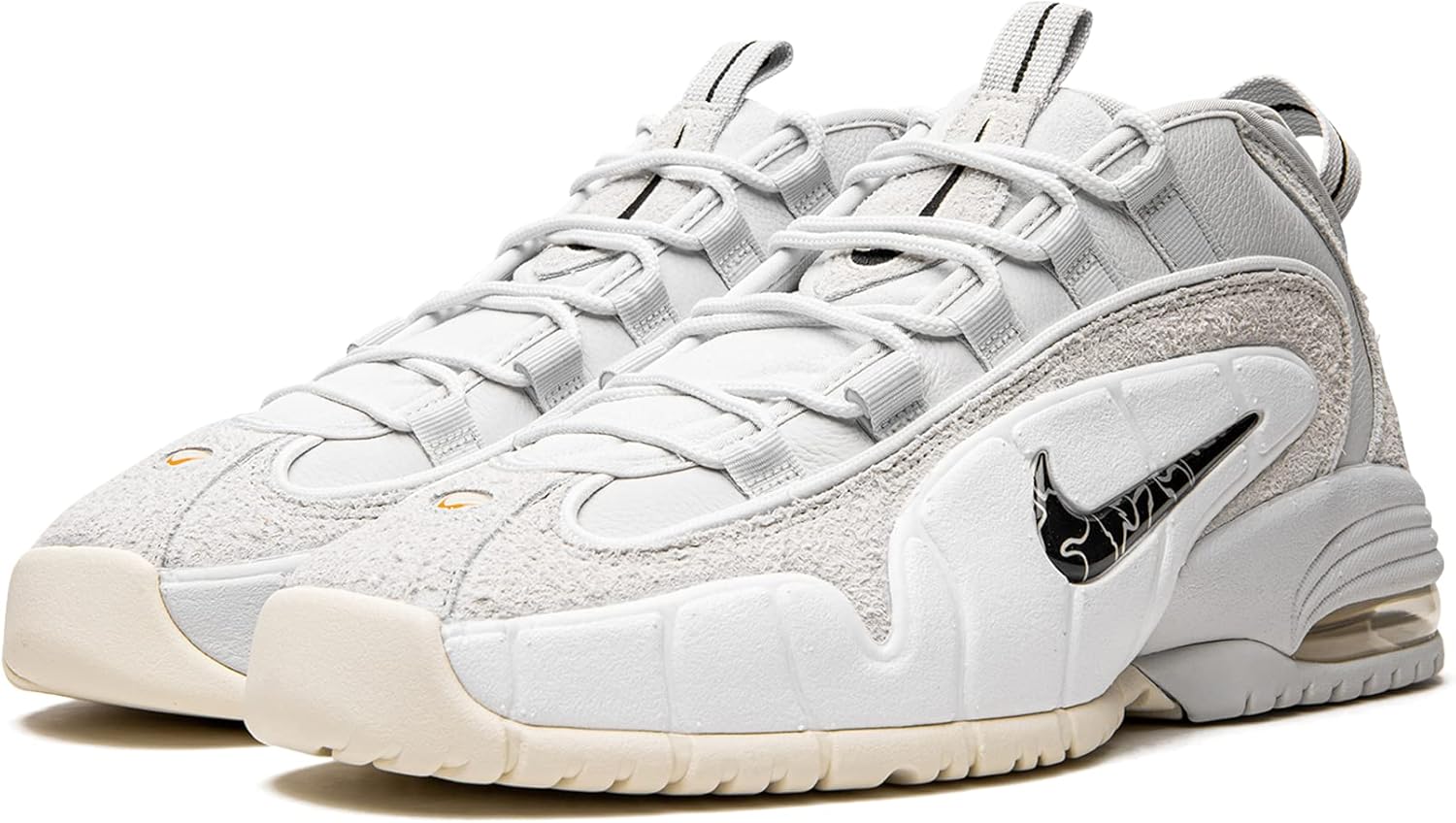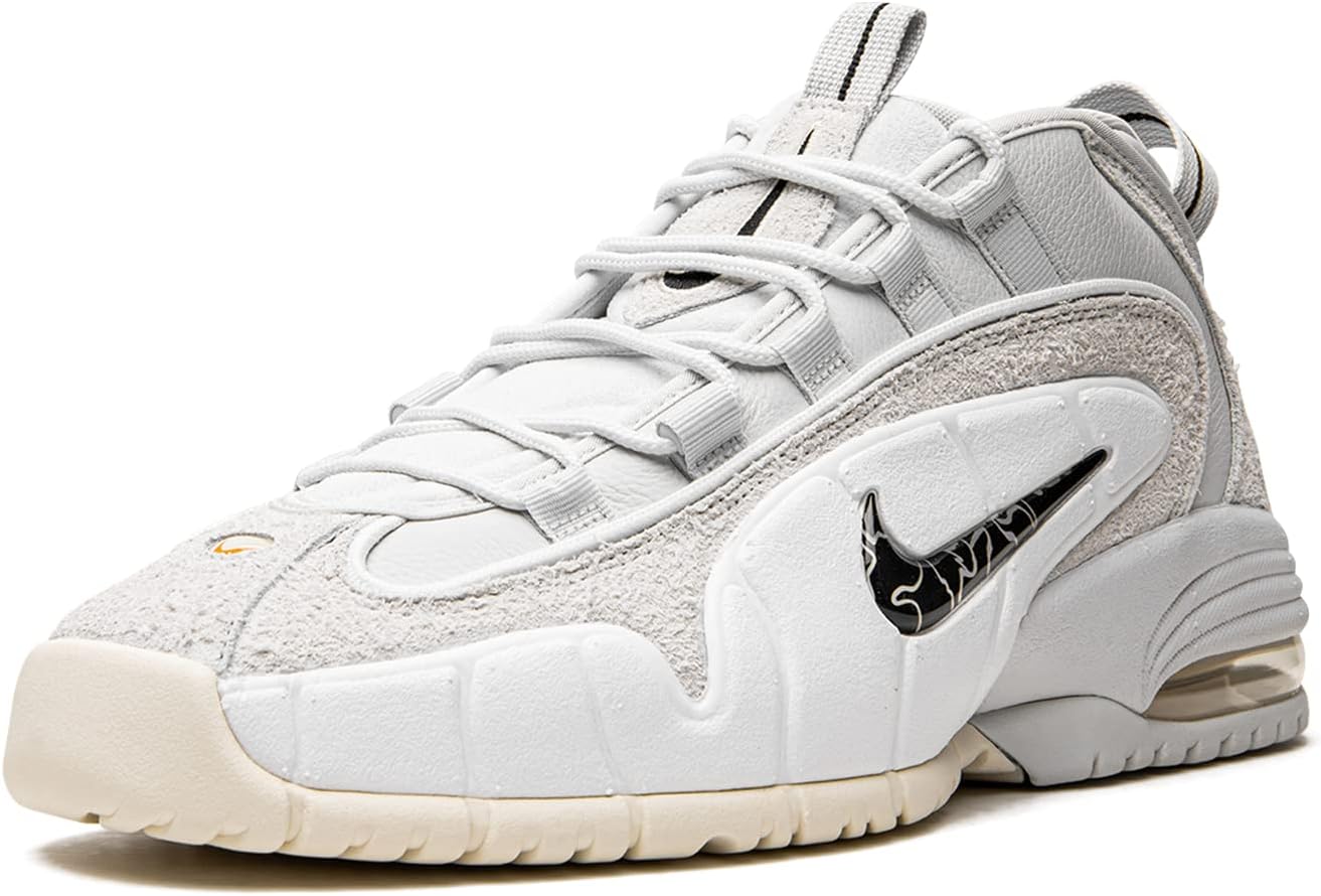 Кроссовки Nike Air Max Penny выполнены из кожи и нейлона с мягким бортиком для комфорта. Кроссовки украшены вышитыми логотипами Swoosh на язычке и боковой стороне, а также логотипом Swoosh спереди и вышитым логотипом Air Max Penny сзади. Кроссовки имеют видимую подошву, шнуровку и резиновую подметку. Модель: NKDV0684-100, цвет: белый / Varsity Royal / черный, материал: кожа / нейлон.