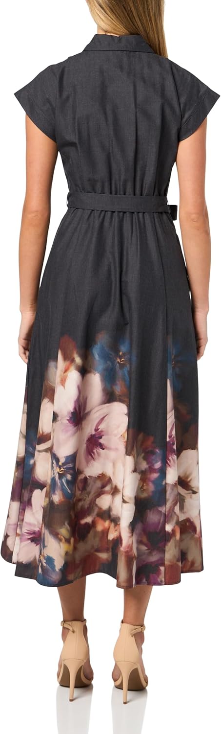 Женское хлопковое платье-миди с цветочной каймой Calvin Klein, Black Multi