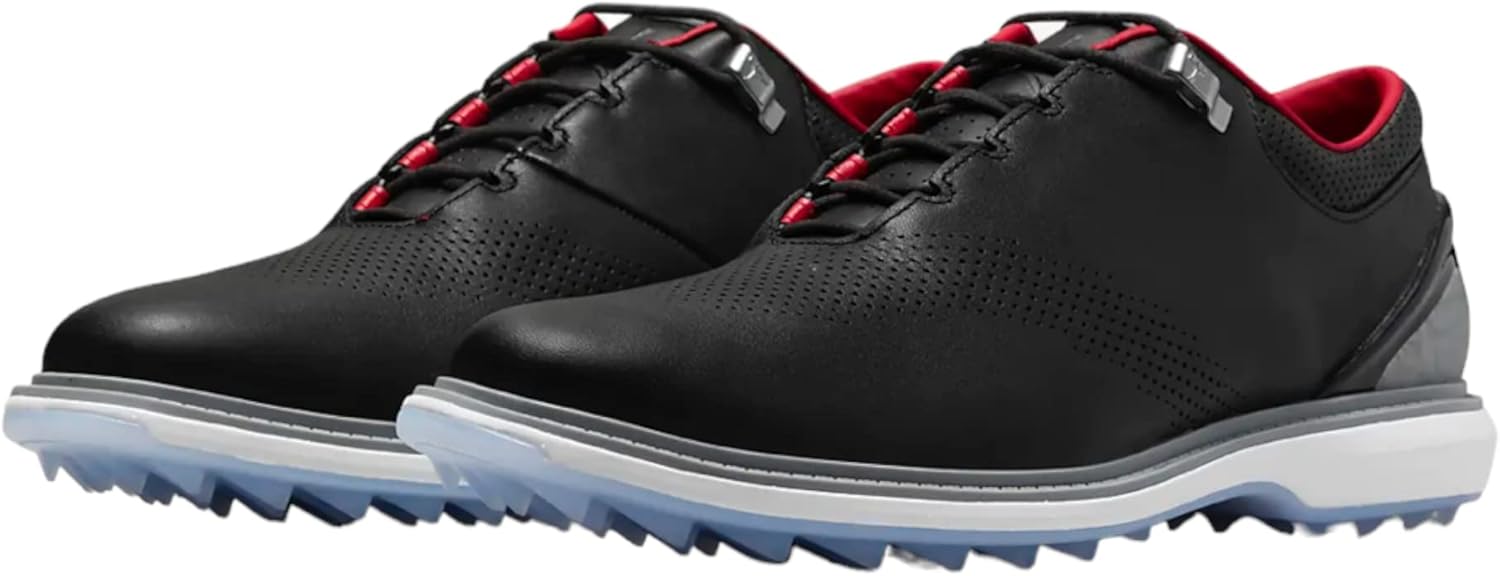 Мужские кроссовки для гольфа Nike Air Jordan Adg. Новинка лета 2019 года в линейке Air Jordan - стильные, высокофункциональные кроссовки для игры на разных поверхностях. Jordan Adg оптимизирует амортизацию и ощущение пола, создавая инновационные ощущения от игры; мягкая промежуточная подошва и гибкая подошва позволяют стопе естественно сгибаться во время замаха. Вставка Zoom Air обеспечивает чувствительную амортизацию, а рисунок «встроенного сцепления» улучшает сцепление и взаимодействие с поверхностью. Шнурки интегрированы со средним слоем стопы для надежной и поддерживающей посадки. Частичная внутренняя вставка облегает стопу, создавая ощущение носка. Верх из высококачественной кожи украшен принтом слона (синоним Air Jordan 3) на пятке и носке, что придает ему культовый стиль. Дополнены логотипом Jumpman на язычке и пятке. Ограниченная гарантия водонепроницаемости 1 год.