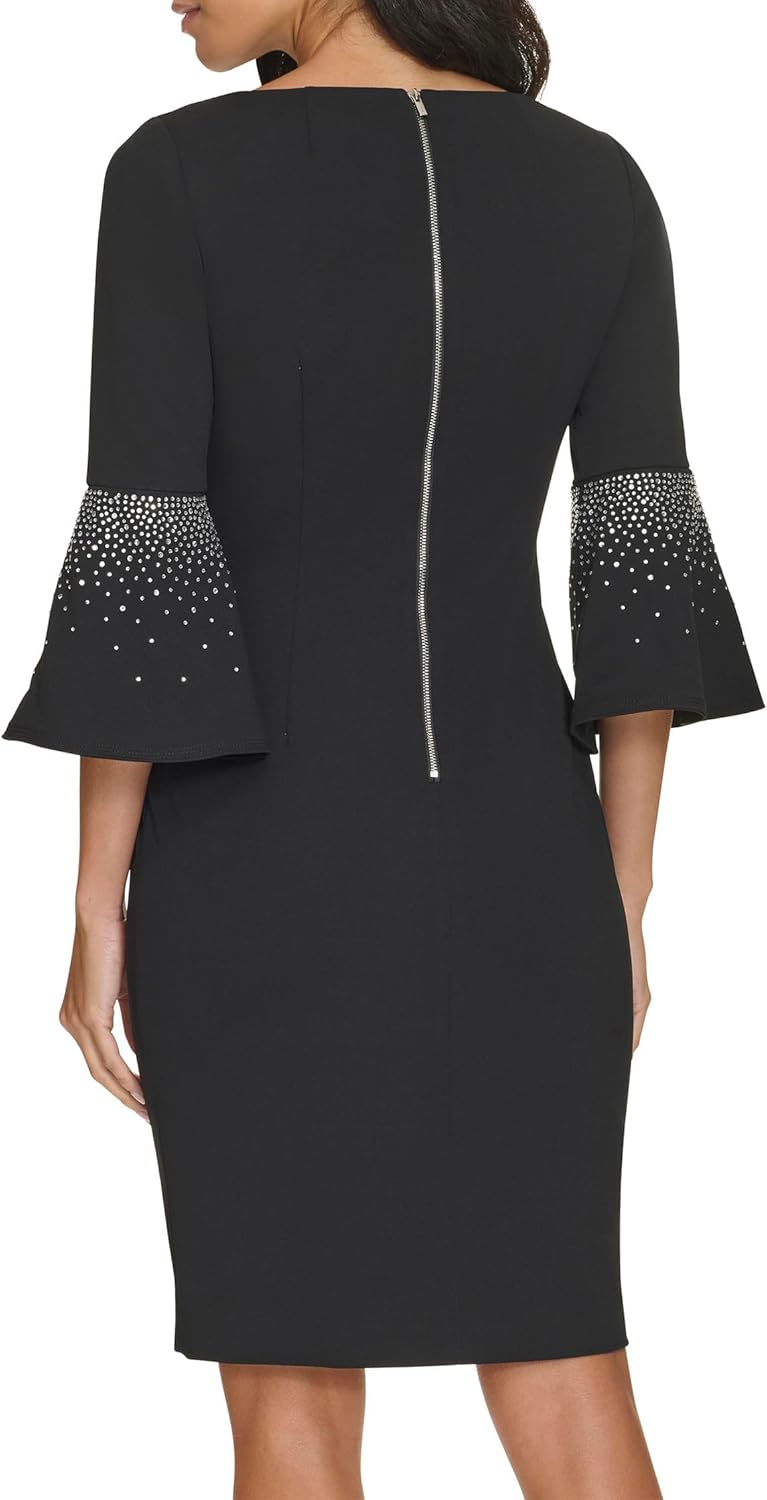 Calvin Klein Women's Scuba Crepe Hotfix SLV Sheath, Black