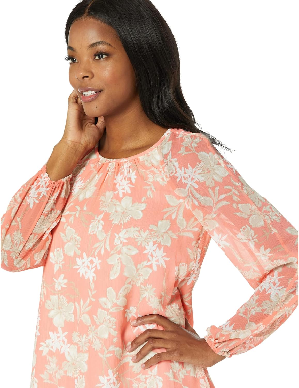 Платье-трапеция Tommy Hilfiger из шифона с цветочным принтом, рукавами-фонариками и присборенными манжетами. Застегивается на хлястик и шлевку. Легкий шифон.