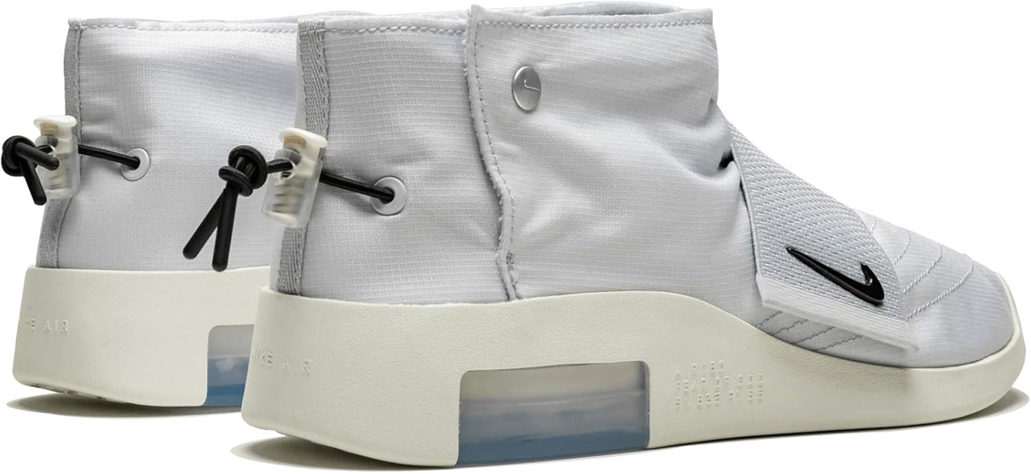 Модель Fear of God 1: верх из нейлона, замшевый носок, термополиуретановый обхват носка, каркас из термополиуретана, мини-галочка, шнурки Tope, петельки на пятке, внутренняя вставка на голенище, резиновая подошва, видимая вставка Air. Модель: NKAR4237-100, цвет: парусиновый/черный, материал: нейлон/замша.