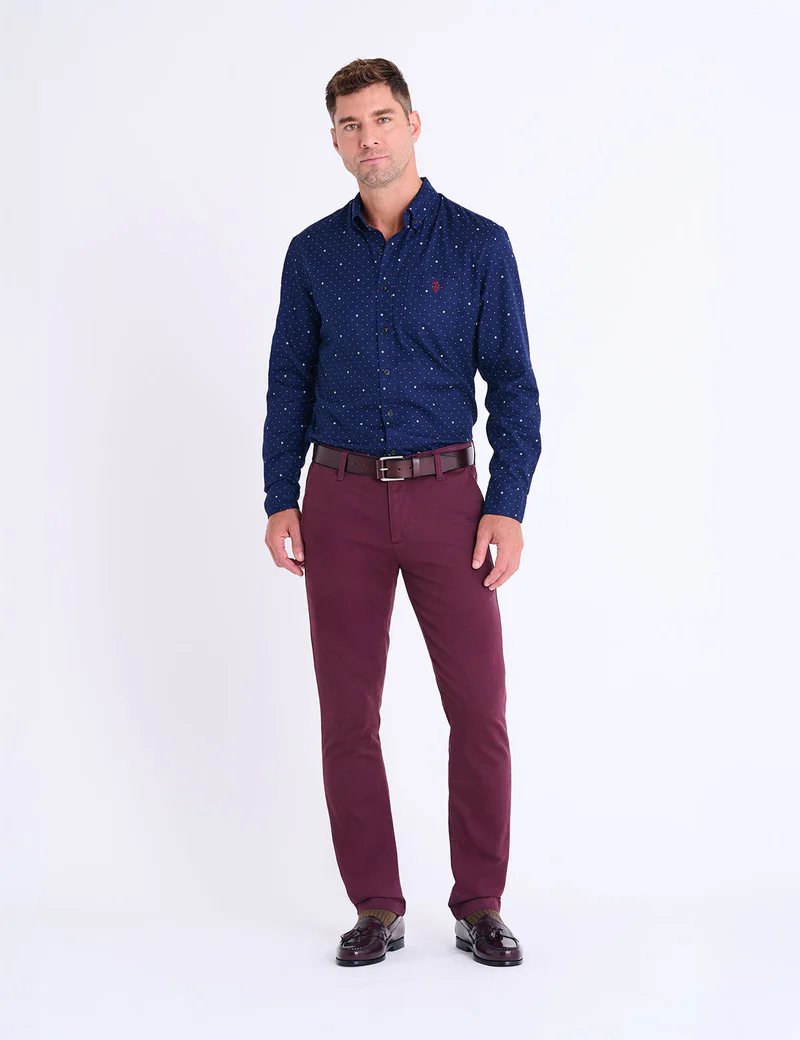 Подчеркните свой повседневный стиль с рубашкой из саржи с длинным рукавом и узором «ромбы» персикового цвета от US Polo Assn. Изготовленная из мягкой саржи персикового цвета, эта рубашка отличается гладкой текстурой и превосходным комфортом, а также изысканным внешним видом. Изящный принт в горошек и ромбы по всей поверхности добавляет визуальной привлекательности, сохраняя при этом элегантный и универсальный вид. Эта рубашка подходит как для офиса, так и для повседневных выходных, она сочетает в себе вневременную привлекательность и современный стиль.