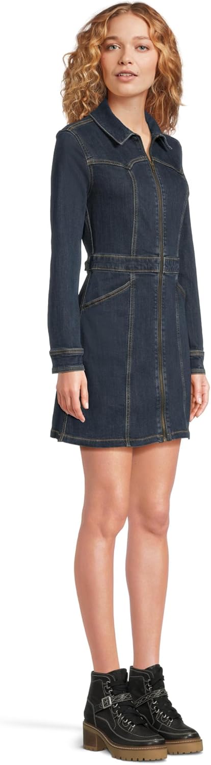 Мы возвращаемся в 70-е с нашим джинсовым ретро-платьем. Оно облегающего кроя, застежки-молнии спереди, двух карманов и идеальной длины мини.