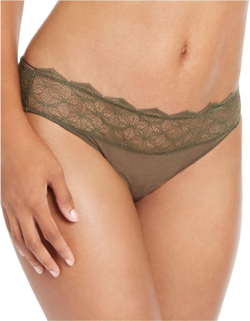 Нежные кружевные отделки обрамляют цветочные и звездные узоры коллекции STARQUILT, создавая свежий и сексуальный образ для молодых и модных силуэтов. Эти плавки-бикини выполнены из полупрозрачного кружева, имеют среднюю посадку, широкий полупрозрачный кружевной пояс и логотип на бедре.