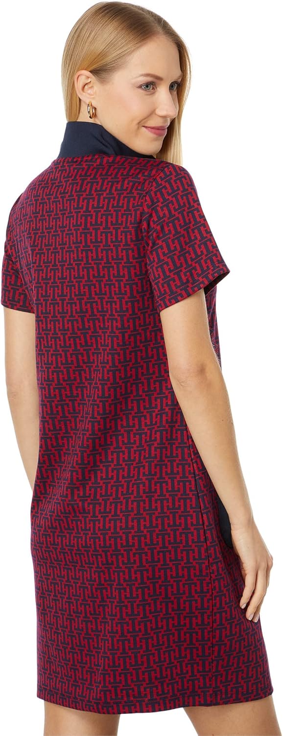 Это женское спортивное платье Tommy Hilfiger с застежкой-молнией 1/4 представляет собой платье с короткими рукавами и жаккардовым принтом на молнии 1/4.
