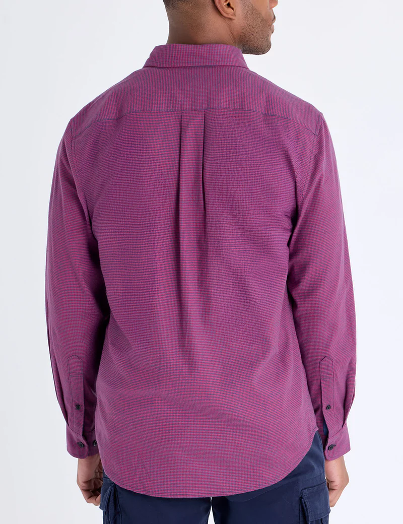 Эта рубашка сочетает в себе лучшее из двух миров: классический узор и непревзойденный комфорт. Персиковый твил придаёт ей мягкость, а узор «гусиная лапка» делает её классической и универсальной.